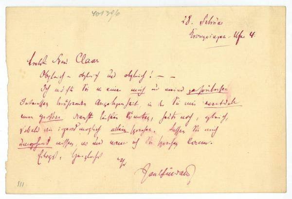 1 S. qu.-8vo. An eine Frau Claar: "Obgleich - obgleich und obgleich! - Ich möchte Sie in einer mich in meinem persönlichen Interesse berührender Angelegenheit, in der Sie mir eventuell einen großen Dienst leisten könnten, heute noch, gleich, sobald irgend möglich allen sprechen. Lassen Sie mich umgehend wissen, wo und wann ich Sie sprechen kann […]". - Der Bruder des Diplomaten und Schriftstellers Rudolf Lindau (1829-1910) war einer der "einflußreichsten Theaterkritiker der Gründerzeit" (DBE) und Theaterdirektor in Meiningen und Berlin. Zu seinem literarischen Werk gehören Reiseberichte und -briefe (u. a. "Altes und Neues aus der Neuen Welt", 1893), Dramen sowie Romane und Novellen (u. a. "Karl Hau und die Ermordung der Frau Josefine Molitor", 1907).