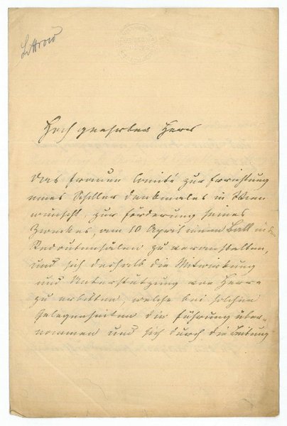 4 SS. auf Doppelblatt. Gr.-8vo. An einen namentlich nicht genannten Adressaten mit der Bitte um Mitwirkung an einem Ball in den Redoutensälen zur Unterstützung eines Komitees zur Errichtung eines Schillerdenkmals. - Häufig unter dem Namen Otto August veröffentlichend, erschienen Aufsätze (in der "Neuen Freien Presse", in "Westermanns Monatsheften"), Broschüren und kleinere Abhandlungen vornehmlich volkswirtschaftlich-sozialen Inhalts der Autorin; unter ihrem eigenen Namen veröffentlichte sie "Aus dem persönlichen Verkehr mit Franz Grillparzer". - Auf Briefpapier mit gepr. Vignette des Frauenkomitees.
