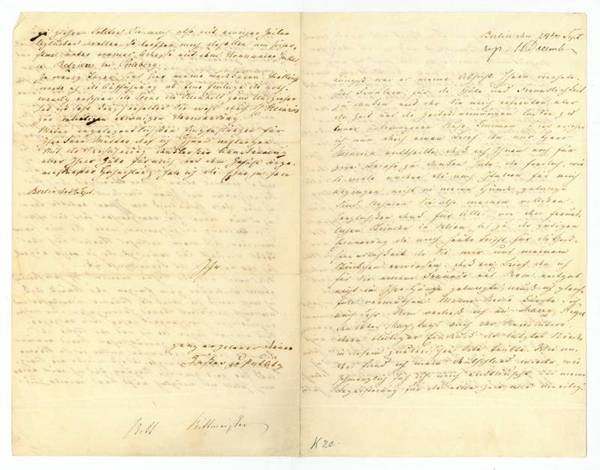 4 SS. auf Doppelblatt. 8vo. An ein Fräulein aus Wien mit einem Eindruck aus Italien, das sich eben im Ersten Unabhängigkeitskrieg befand und wohin er im Januar des Jahres zu einer Kavaliersreise aufgebrochen war, und die Revolution: "[.] Meine Reise kürzte sich nun sehr. Rom verließ ich im Maerz, Neapel den 16ten May, tags nach der Revolution, deren blutiger Eindruck die letzten Stunden in diesem zauberischen Orte trübte. Wie anders fand ich mein Deutschland wieder, wie schmerzlich sah ich mich enttäuscht, und meine Begeisterung für die neue Zeit, wie voreilig. Alles das sah ich in Frankfurt ein, wo ein zweimonatlicher Aufenthalt mich in die deutschen Verhältnisse einweihte [.]". - Nach einem erfolgreichen Debut als Lustspielautor aus dem Regierungsdienst austretend, verfaßte der promovierte Jurist in Folge zahlreiche, an französischen Vorbildern (vor allem Eugène Scribe) orientierte Lustspiele und verschiedene Prosaarbeiten. Sein Märchenidyll "Was sich der Wald erzählt" (1850) erlebte bis zur Jahrhundertwende 50 Auflagen und zahlreiche Übersetzungen. Auch veröffentlichte Putlitz Autobiographisches sowie eine kommentierte Ausgabe der Briefe und Tagebuchaufzeichnungen Karl Immermanns; von 1863-67 war er Intendant des Hoftheaters in Schwerin, seit 1873 in der gleichen Funktion in Karlsruhe tätig.