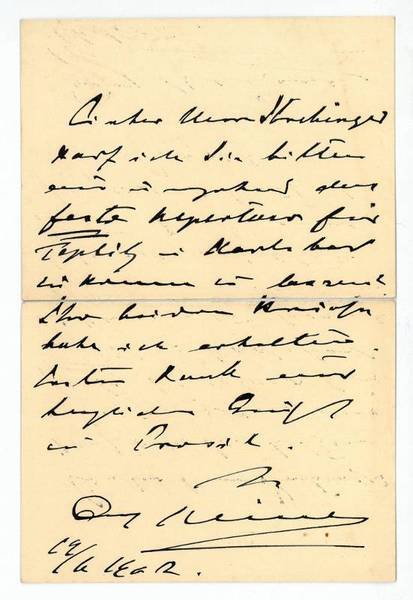 1 S. 8vo. An den Schauspieler Julius Strebinger mit der Bitte, ihm "umgehend das feste Repertoire für Teplitz u. Karlsbad zukommen zu lassen". - Im Mittelfalz durchrissen.