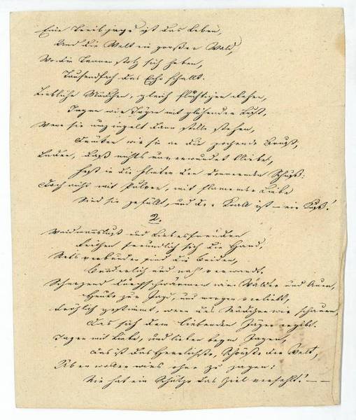 1 S. (24 Zeilen). Kl.-4to. Eine Treibjagd ist das Leben, | Und die Welt ein großer Wald, | Wo die Tannen stolz sich heben, | Tausendfach das Echo schallt. | Liebliche Mädchen, gleich flüchtigen Rehen, | Jagen wie Jäger mit glühender Lust, | Wenn sie umzingelt dann stille stehen, | Drücken wir sie an die pochende Brust [.]. - Anton Vary war Verfasser des Stückes "Treff-König".