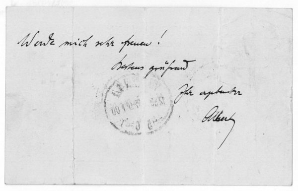 1 S. Qu.-8vo. Mit eh. Adresse. An den Pathologen Richard Kretz: "Werde mich sehr freuen! Bestens grüßend | Ihr ergebenster | Albert". - Eduard Albert wurde nach seiner Promotion Assistent bei Johann von Dumreicher an der Chirurgischen Klinik, habilitierte sich 1872, wurde im Jahr darauf in Innsbruck und später Professor und Mitdirektor der Chirurgischen Klinik in Wien. Ihm "gelang vermutlich als erstem eine Nerventransplantation und eine Schilddrüsenentfernung" (DBE); sein "Lehrbuch der Chirurgie" (1877-80), das mehrfach aufgelegt und in mehrere Sprachen übersetzt wurde, legte erstmals die Kenntnisse über Antisepsis zugrunde. Zu seinen Schülern zählten u. a. Adolf Lorenz, Julius von Hochenegg und Rudolf Frank. - Etwas angestaubt und mit kleinen Faltspuren.