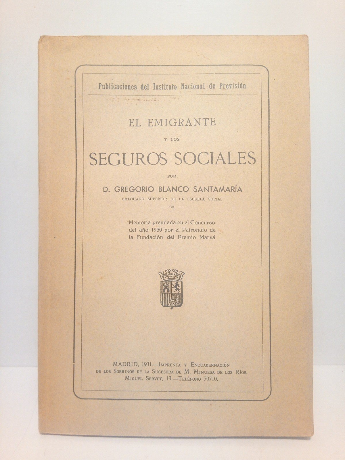 El emigrante y los seguros sociales (Memoria premiada en el Concurso del año 1930 por el Patronato de la Fundación del Premio Marvá)