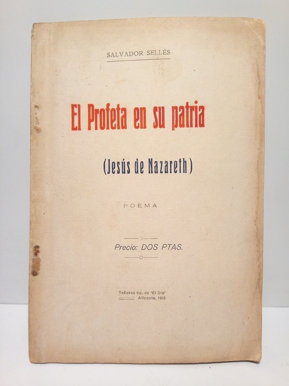 [PRIMERA EDICION].- Alicante: Talleres Tip. de El Día, 1923.- 49 p.; 4º menor (20,5 x 14 cm); Rústica Ed.* Tras la cubierta anterior lleva una dedicatoria autógrafa del autor. La cubierta con unos tenues ribetes de humedad en los márgenes, que se ven tambien en las primeras 4 hojas. VALENCIA