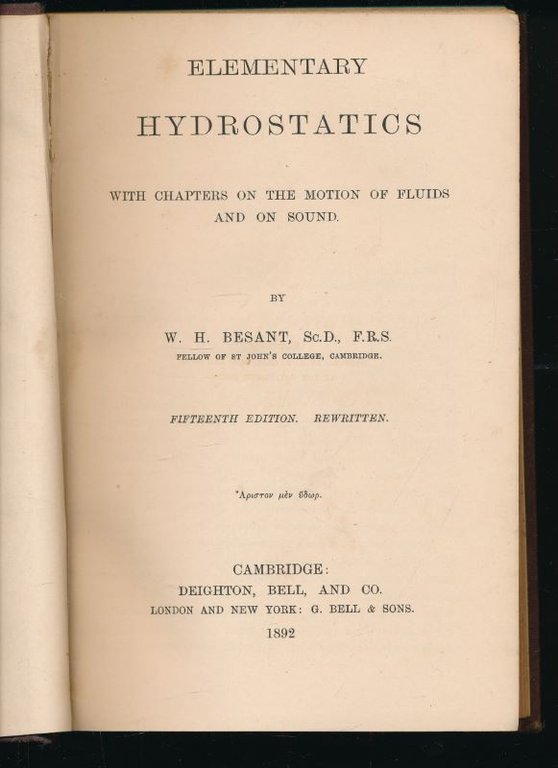 Elementary hydrostatics with chapters on the motion of fluids and on sound
