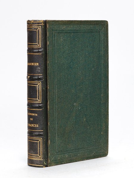 Rappel du titre complet : Eléments de Finances suivis de Eléments de Statistiques, de la Misère, l'Association et l'Economie Politique ; Tableau des causes de la misère et des remèdes à y apporter ; buts et limites de l'économie politique et de Notes diverses [ Edition originale ] Bon état (rel. très lég. frottée). Economiste et homme politique, Joseph Garnier (1813-1881) propose ce volume en complément de ses "Eléments de l'Economie Politique". Comme il le précise en préface, "il n'y a pas à notre connaissance de livre élémentaire et didactique sur les Finances", et il tenté d'y pallier par le présent ouvrage.