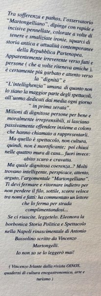 Rapide ed incisive pennellate, squarci di storia antica e attualità contemporanee della Repubblica Partenopea.
