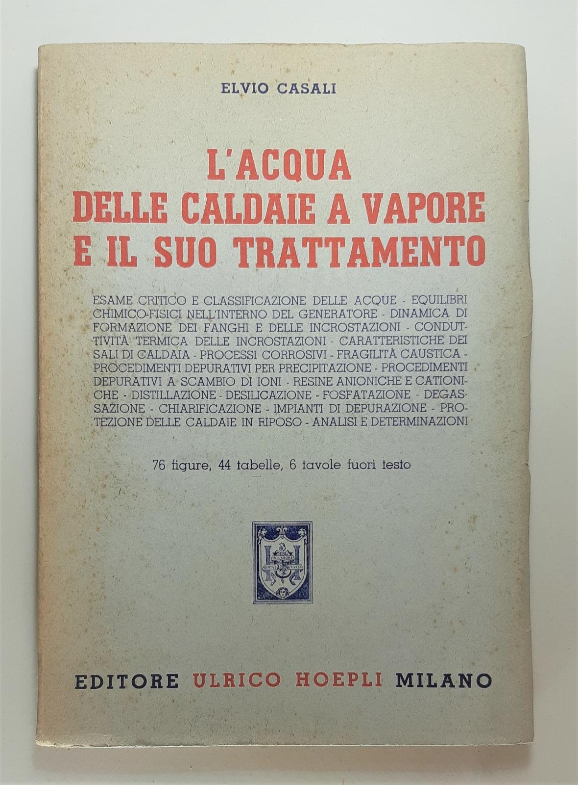 Elvio Casali L'acqua delle caldaie a vapore e il suo trattamento Hoepli 1949