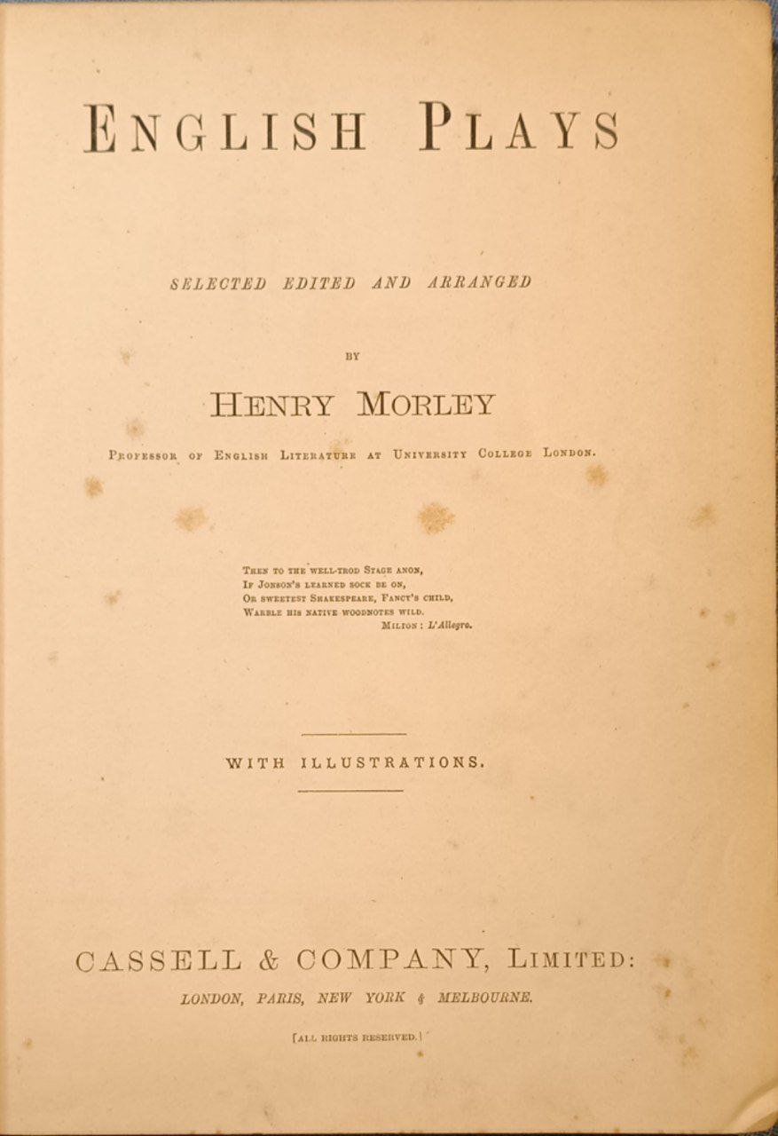 English Plays. | Libros antiguos y modernos | Morley Henry