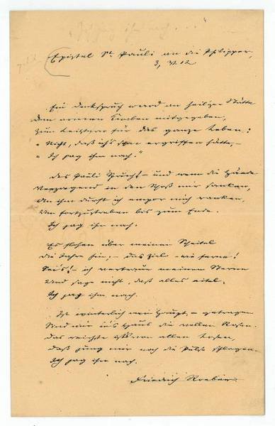 Epistel St. Pauli an die Philipper, 3, V. 12. Eigenh. Gedicht mit U.