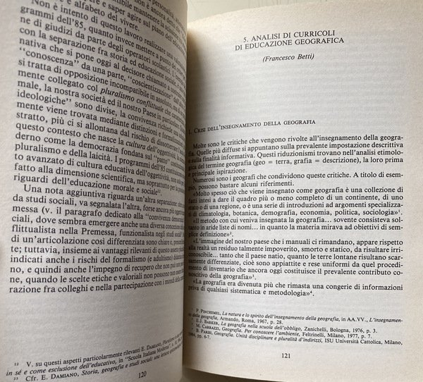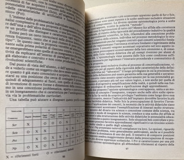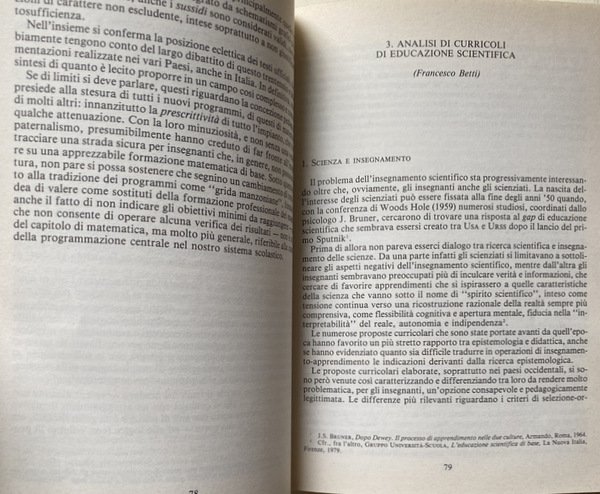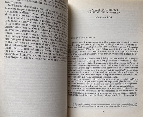 Questa indagine sui curricoli, fra epistemologia e didattica, può riuscire un'occasione interessante di formazione professionale, concomitante e complementare rispetto all'applicazione in atto dei nuovi programmi. Essi vengono relativizzati da questa analisi: nell'ampio quadro dei problemi epistemologici e delle proposte educative risultano uno dei tanti modi di rispondere alle questioni poste.