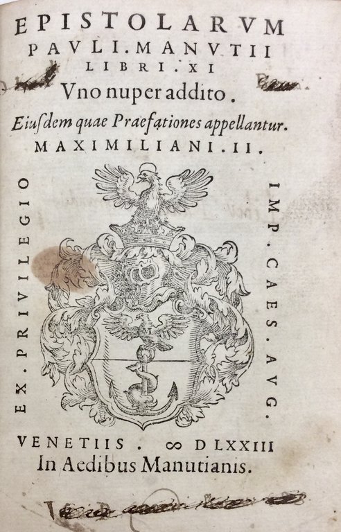 EPISTOLARUM PAULI MANUTII LIBRI XI. - Uno nuper addito. Eiusdem quae Praefationes appellantur. Maximiliani II.