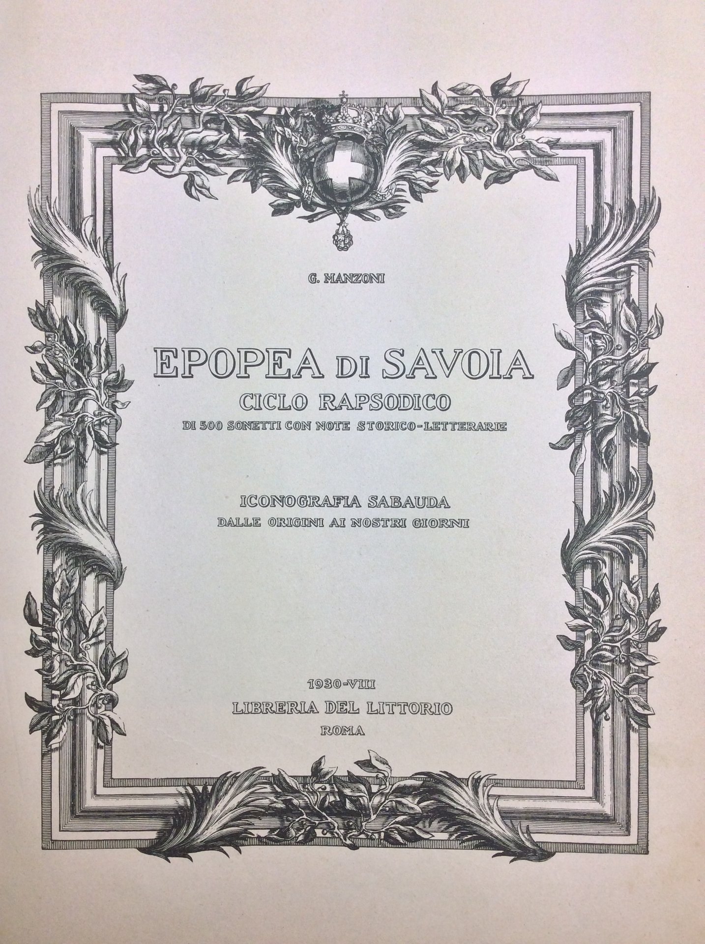EPOPEA DI SAVOIA. - Ciclo rapsodico di 500 sonetti con note storico-letterarie - Iconografia sabauda dalle origini ai nostri giorni.