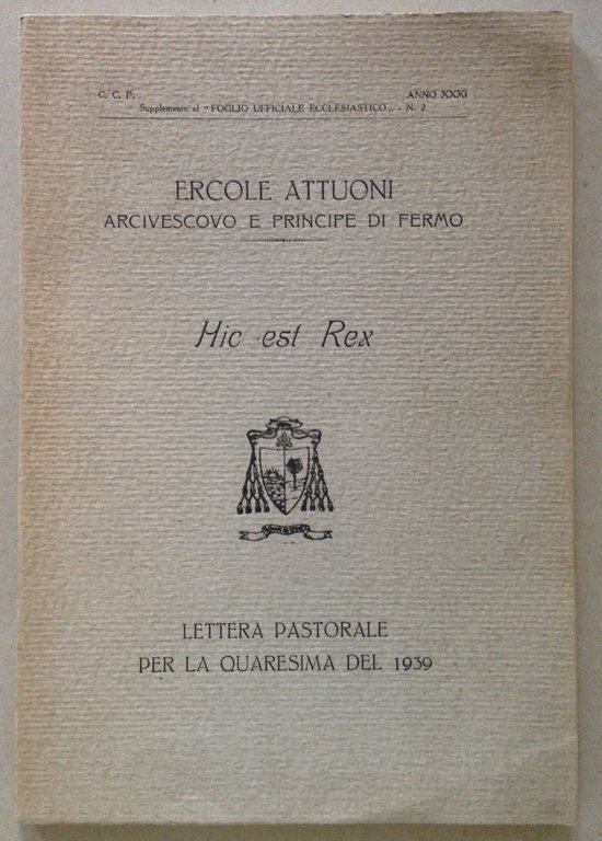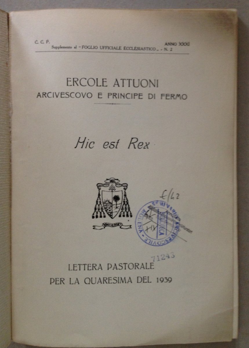 Ercole Attuoni Principe Fermo Hic Est Rex Lettera Pastorale Quaresima del 1939