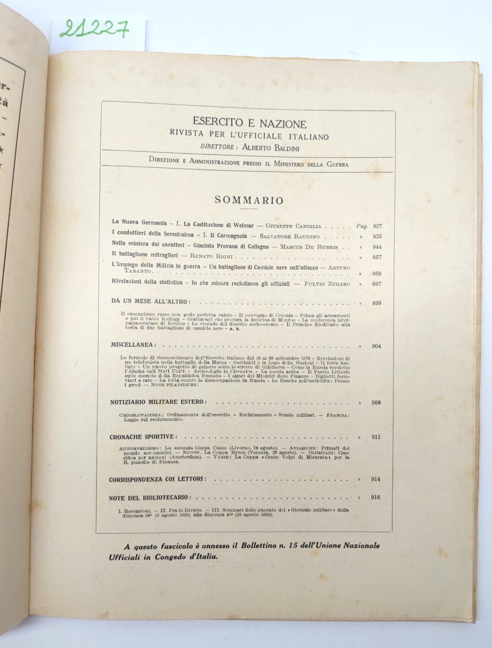 Esercito e nazione n. 9 settembre 1928 Rivista per l'ufficiale italiano in servizio attivo e in congedo