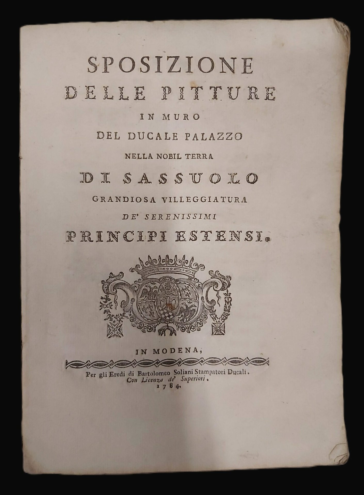 ESPOSIZIONE DELLE PITTURE in muro del Ducale Palazzo nella Nobil Terra di Sassuolo grandiosa villeggiatura de’ Serenissimi Principi Estensi.