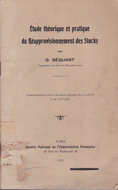 Étude théorique et pratique du Réapprovisionnement des Stocks. Communication faite à la séance plénière du C. N. O. F. le 20 avril 1933 | Libros antiguos y modernos | Béquart G.
