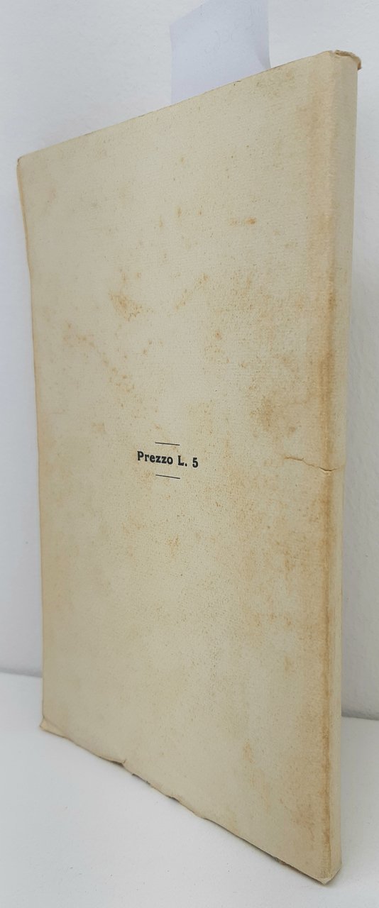 Legatura morbida editoriale con aloni e macchie ai piatti e al dorso, dorso con uno strappo nella zona mediana, tagli bruniti con fioriture, libro leggermente deformato al dorso, firma di possesso al piatto anteriore antiporta e frontespizio, timbro di catalogazione all'antiporta e timbri di possesso al frontespizio, fioriture diffuse alle pagine interne che non impediscono la lettura, legatura allentata con piccoli strappi al margine interno in alcune pagine, vedere immagini, numero pagine 124 dimensioni cm 19 * 13,3