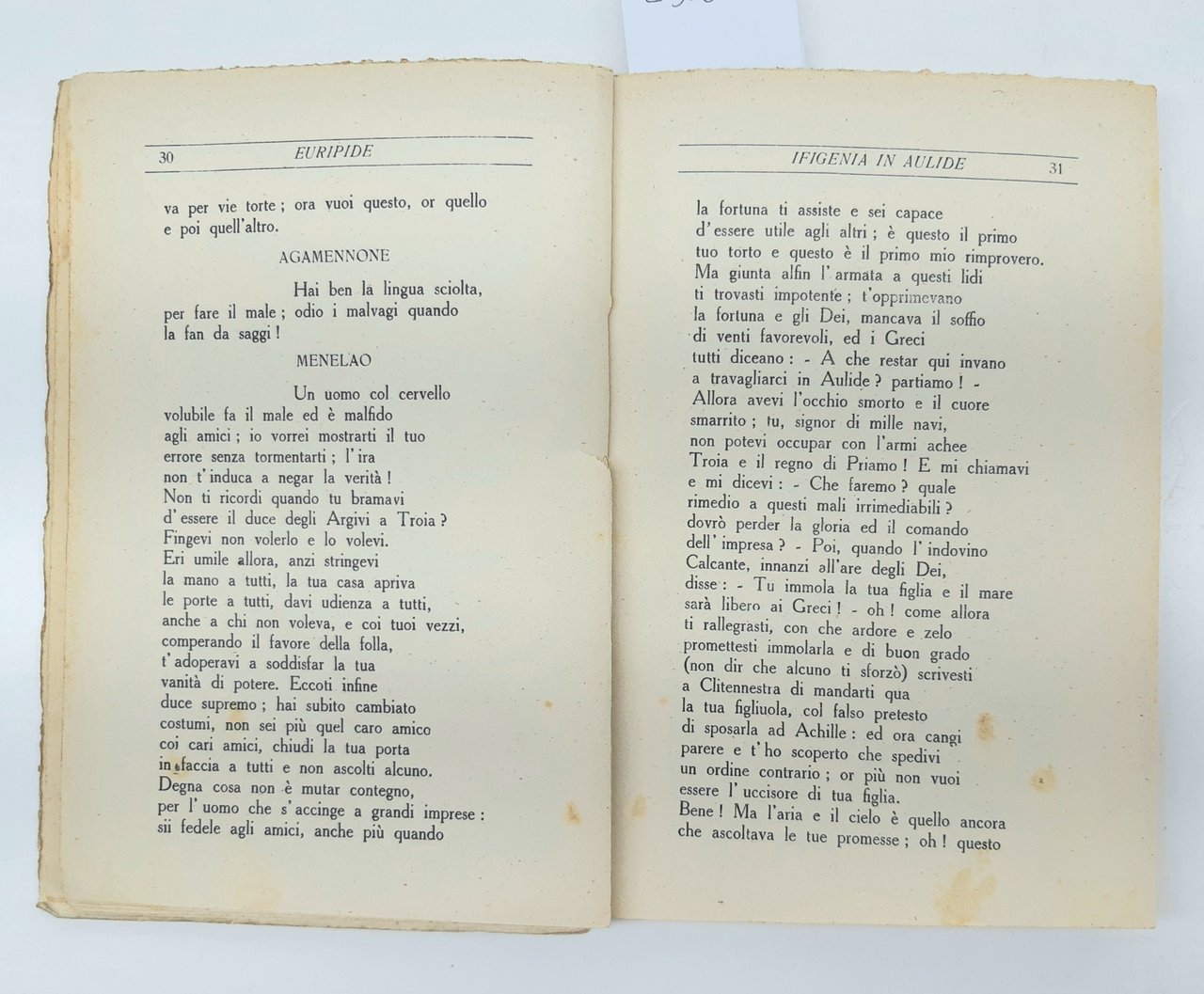 Euripide Ifigenia In Aulide Vers. Garavani 1930 Abela Carboneria