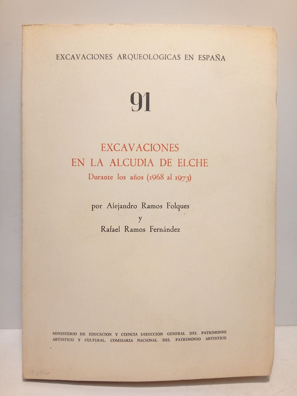 Madrid: Serv. de Publs. del Ministerio de Educación y Ciencia, 1976.- 45 p. + 19 p. de Catálogo de Publs.: Profusión de láminas en papel cuché fuera del texto e ilustraciones y láminas con dibujos a plena página, algunos plegados; 4° mayor (25,2 x 18 cm); Intonso; Cartulina Ed. .- (Excavaciones Arqueológicas en España. 91).* ARTE ANTIGUO Y ARQUEOLOGÍA