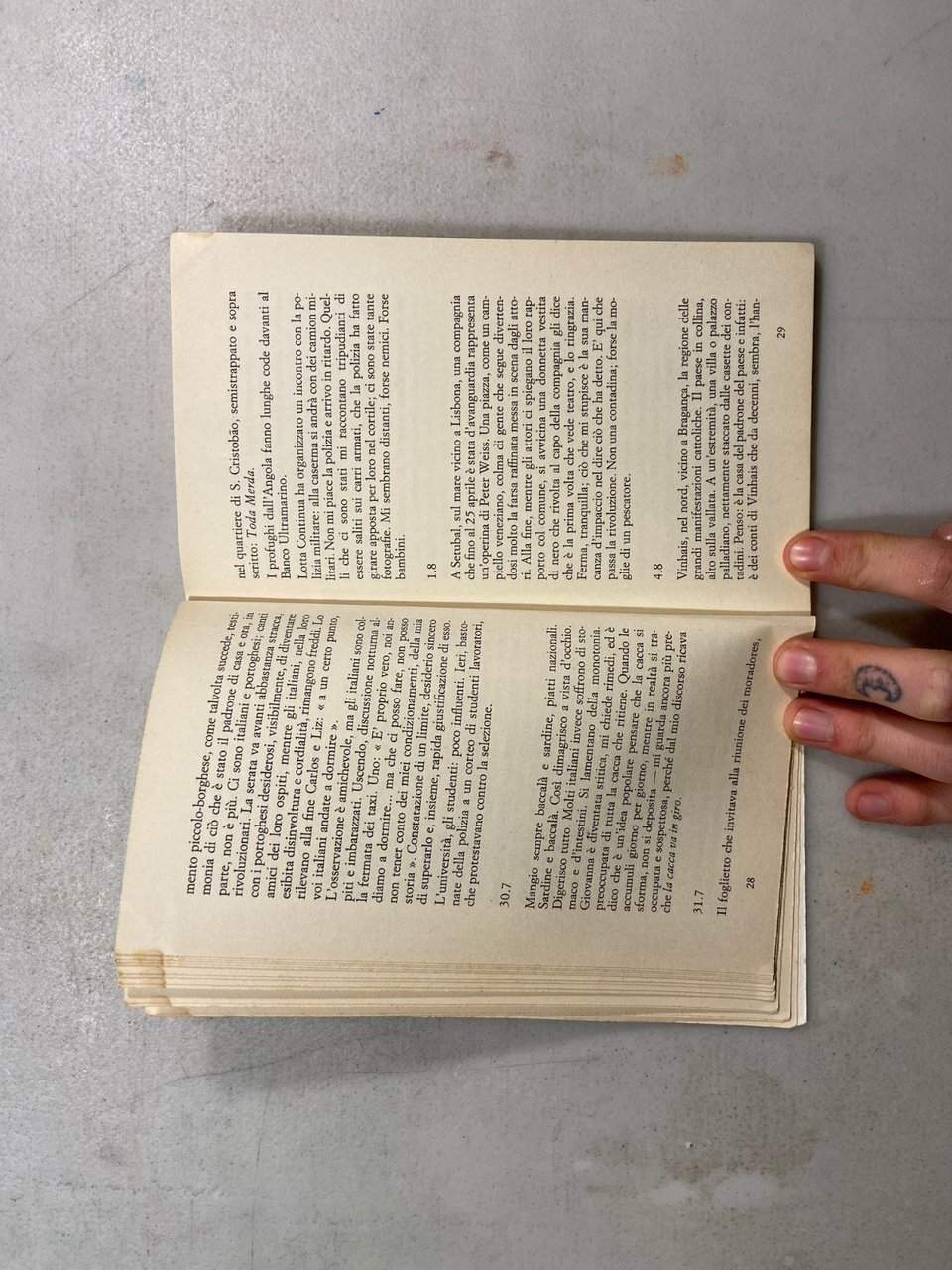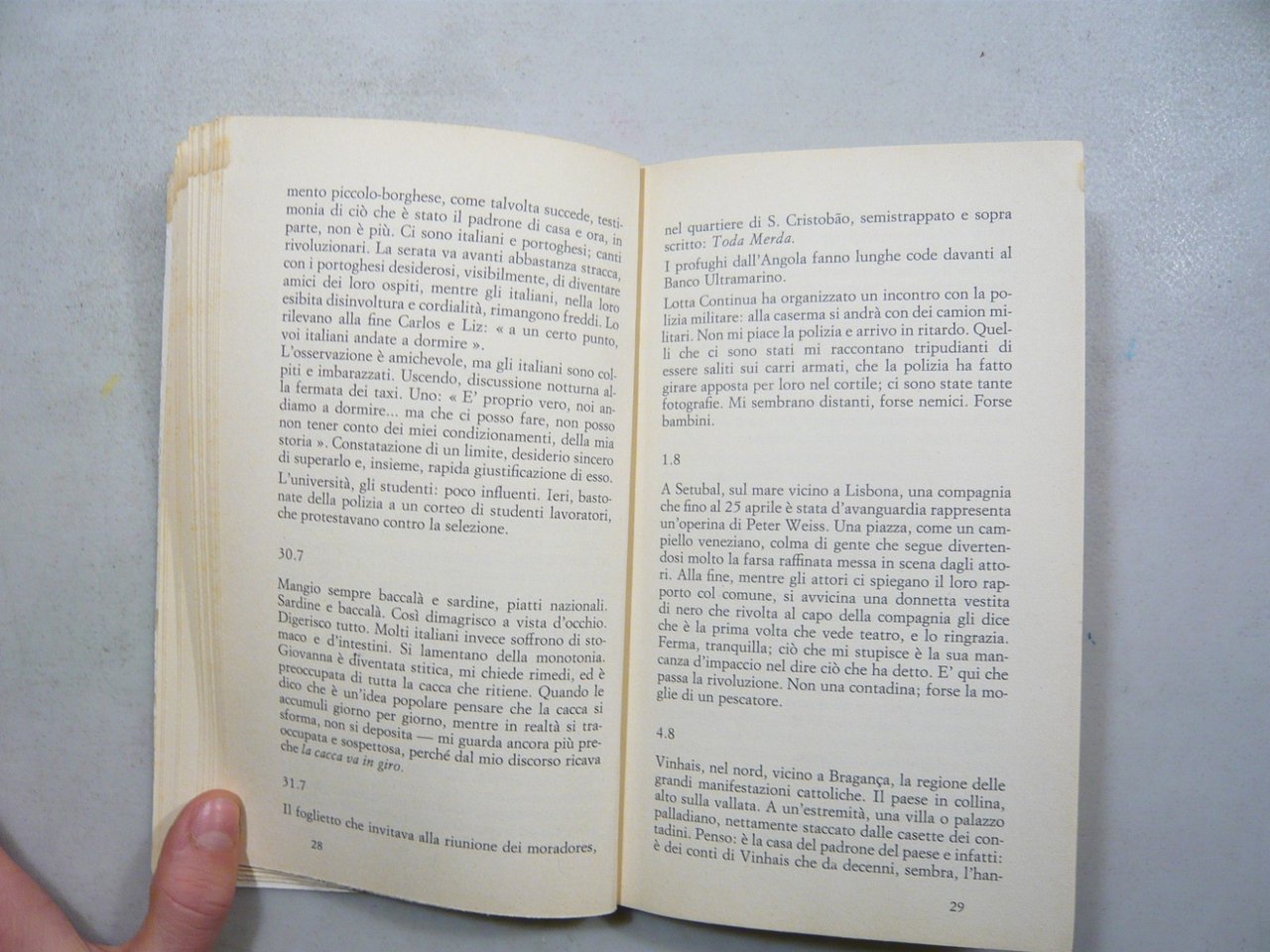 Elvio FachinelliUMA TENTATIVA DE AMORPortogallo estate 1975Cooperativa Scrittori, Roma, 1976Brossura, 20,5x12,5 cm, pp. 78Collezione I GulliverCon illustrazioni in bianco e neroPeso: g. 118Cod: 6272CONDIZIONI DEL LIBRO:Buone condizioni. Pagine ingiallite con piccole macchie persistenti sugli angoli superiori.Copertina leggermente usurata.