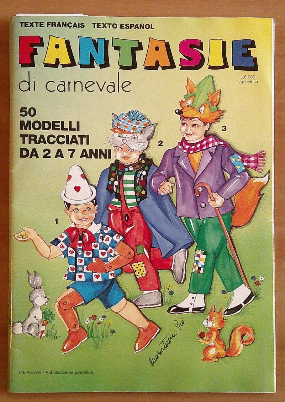 Fantasie di Carnevale , 50 Modelli tracciati da 2 a 7 anni. Texte Français - Texto Espanol. N.6 - Anno VI - Pubblicazione periodica. Ed. IBI - Milano, s.d. anni 1990. Brossura editoriale con modellini di maschere da Carnevale da cucire. 21x30; pp.51. Stato di Nuovo. , Perfetto (Mint)