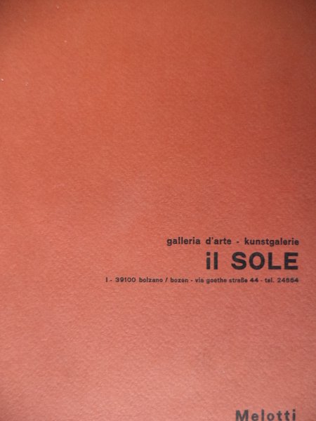 Stampato in 1000 copie, catalogo mostra Bolzano , Galleria Il Sole , 6 aprile - 2 maggio 1973 , testo di Fausto Melotti in italiano e tedesco, legatura a punto metallico, formato 16x23 , pagine 8 , illustrato, ottime condizioni - 15470