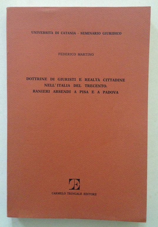 Federico Martino, Dottrine di giuristi e realtà cittadine nell'Italia del Trecento. Ranieri Arsendi a Pisa e a Padova Carmelo Tringale Editore, Catania 1984; cm. 23.5x15.5; pp. 319; dedica autografa dell'autore all'occhietto; br. ed. Condizioni di conservazione Esemplare in buono stato con leggere tracce d'uso. SETT138.L14100 MT