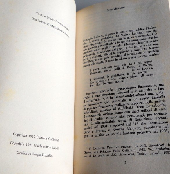 Soggetti: Narrativa francese, Letteratura, Romanzi di formazione, A.-O. Barnabooth, L. Hagiosy, X. M. Tourmier de Zamble, Samuel Butler, Joyce, Proust, Amore, Adolescenza, Charles-Louis Philippe, André Gide, Léon-Paul Fargue, Georges Jean-Aubry, Paul Valéry, Alain-Fournier, Premio Goncourt,Flanerie, Esotismo, Ottocento, Novecento, Libri Vintage, Fuori catalogo, Enfantines, Racconti, Passioni, Sentimentali, Romanticismo, French fiction, Literature, Educational novels, Love, Adolescence, Exoticism, 19th century, 20th century, Non-cataloged books, Tales, Passions, Sentimental, Romanticism