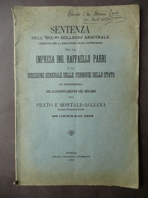 Ferrovie Stato Sentenza 1913 Raddoppiamento Binario Treni Prato Montale Agliana