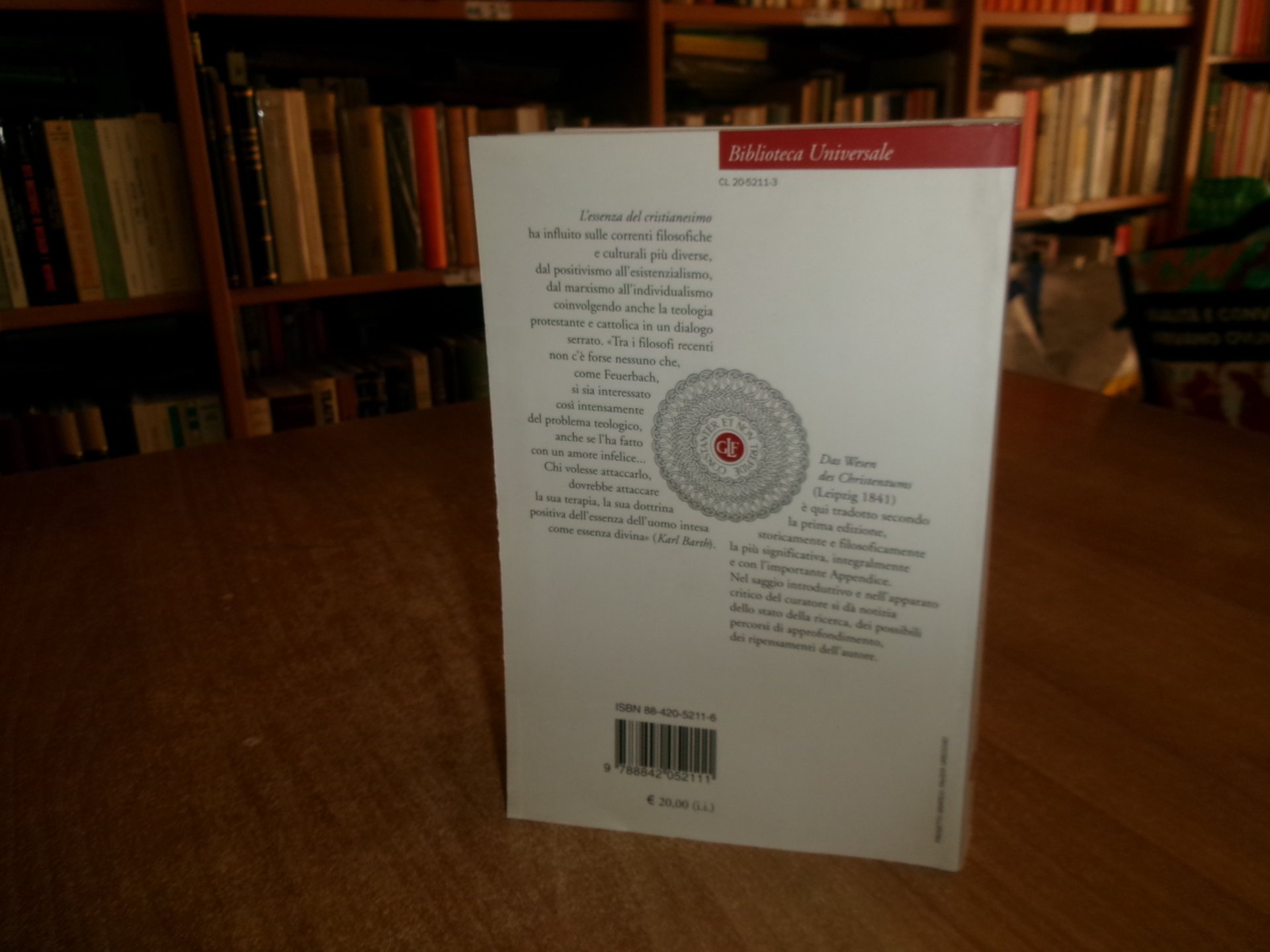 FEUERBACH. L' Essenza del cristianesimo. A cura di Francesco Tomasoni. Bari, Editori Laterza, 2003. In-8°, br. edit. XXXVI, 367 pp. Ottimo stato. Neg. mob. nero W in basso