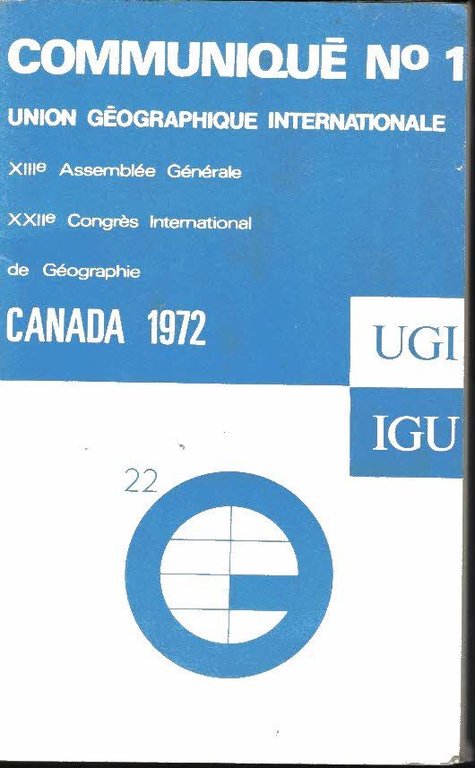 FIRST CIRCULAR. 22ND INTERNATIONAL GEOGRAPHICAL CONGRESS. XIIITH GENERAL ASSEMBLY. MONTREAL. CANADA. AUGUST 10-17, 1972. CONGRESS CENTENARY. 1871-1972. 50TH ANNIVERSARY INTERNATIONAL GEOGRAPHICAL UNION 1922-1972. JANUARY 1970. COMMUNIQUE N.1…