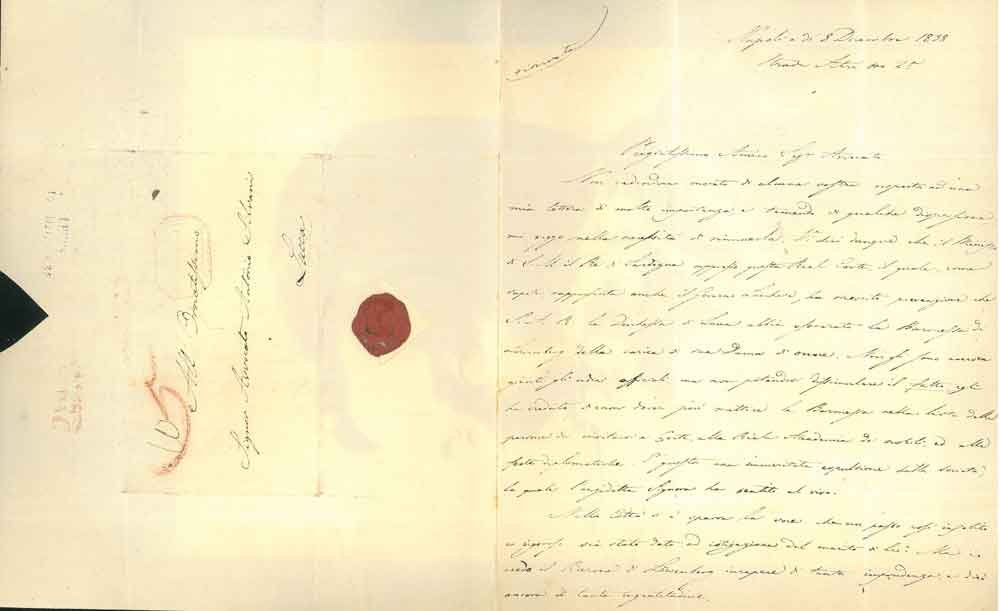Foglio piegato a metà, datato Napoli, di 8 Dicembre 1838, con ceralacca