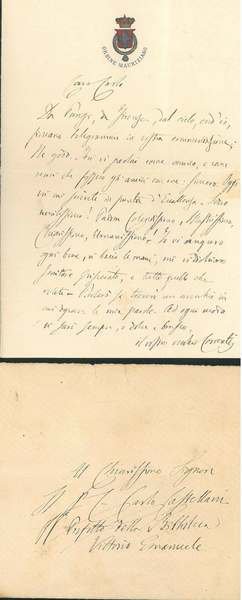 senza data 10x16 cm, 12 righe autografe e firmate di affettuose ed augurali considerazioni indirizzate all'amico Carlo Castellani