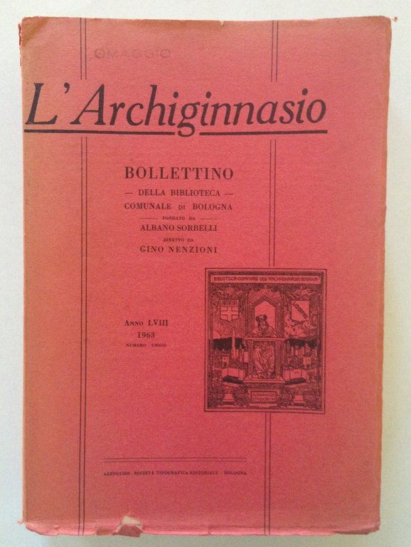 Bollettino Biblioteca Comunale Bologna, L'Archiginnasio Il Fondo Ospedali" nella Biblioteca Comunale dell'Archiginnasio Biblioteca Comunale dell'Archiginnasio 1963, cm 25.5x17.5, pp. 586, figg. in b/n f.t, br. ed. Condizioni di conservazione Esemplare in buono stato con leggere tracce d'uso; brossura editoriale con minimi strappetti e pieghette ai margini, agli angoli e al dorso. SETT121.L11556 MT "