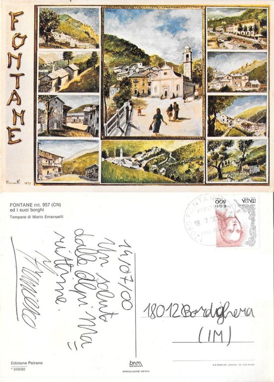 Fontane e i suoi borghi (CN). Tempere di M. Emanuelli. Viaggiata 2000
