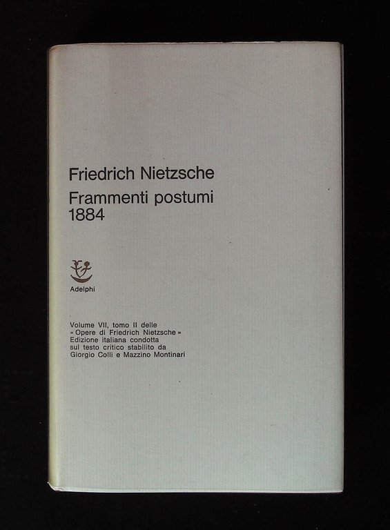 in 8° tela ed. in barbe sov. con acetato, pp. 327 coll. Classici n° 34/ "Opere di Friedrich Nietzsche" Volume VII Tomo II Edizione italiana condotta sul testo critico stabilito da Giorgio Colli e Mazzino Montinari Dorso della sovracoperta ingiallito, altrimenti in ottimo stato (bq)