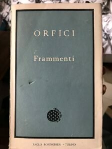 [vt] Prima edizione. Enciclpedia di autori classici diretta da Giorgio Colli, Scelta e traduzione di Graziano Arrighetti. Contiene: Frammenti antichi, Il mito di Core, Teogonia rapsodica. Lieve ammaccatura al piatto alla sovracoperta, per il resto molto buono. Pagg. 122. Brossura con sovrac. edit. Mis mm 200x130