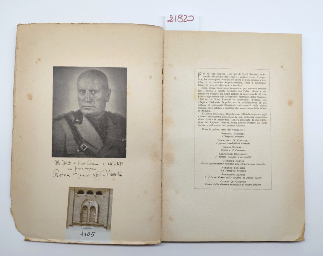 Roma Mater numero VII, legatura morbida editoriale con aloni e sporcizie ai piatti e al dorso, segni del tempo, etichetta di catalogazione al margine interno del piatto anteriore, abrasioni e mancanze agli angoli all'angolo esterno di quasi tutte le pagine, tagli bruniti impolverati quelli superiori, fioriture alle pagine interne maggiormente presenti alle prime due ultime pagine e una macchia all'angolo inferiore esterno che va a interessare quasi tutte le pagine, numero pagine 90 + indice dimensioni cm 25 x 17