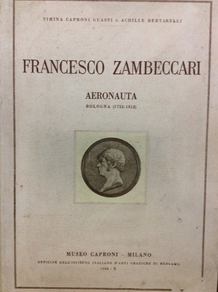 In-4 gr., mz. tela edit. (lievi abras. ai piatti con lievi aloni), ritratto di Zambeccari in medaglione applic. al piatto, titolo oro su tassello al dorso, pp. XIV,124, con 19 illustrazioni nel testo ed una interessante raccolta di 24 tavole fuori testo, in bianco e nero e in tinta, numerose a doppia pag., protette da velina con didascalia. Vi sono riprodotti documenti e antiche stampe che raffigurano la macchina aerostatica ideata dal Conte Francesco Zambeccari e con la quale compì numerose e ardite ascensioni. Questo pioniere dell'areonautica morì vittima di un esperimento di volo. Al volume è premesso uno studio di G. Boffito sugli "Spedienti e strumenti aeronautici nella storia del volo". Tiratura di 600 copie.Solo alc. lieviss. fiorit., altrimenti esemplare intonso, ben conservato.