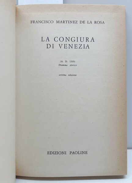 Francisco Martinez della Rosa La congiura di Venezia 7° ed. Paoline 1963