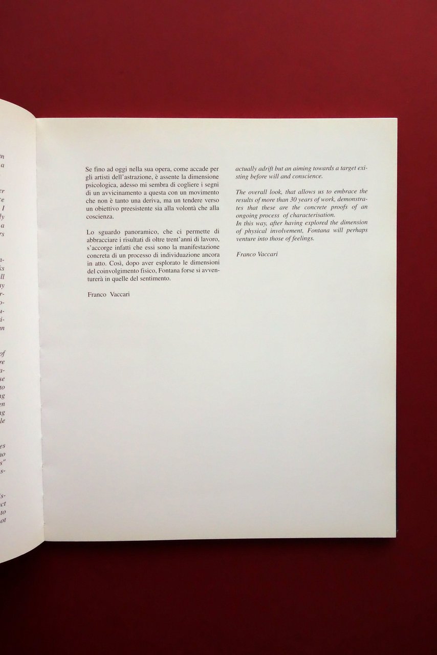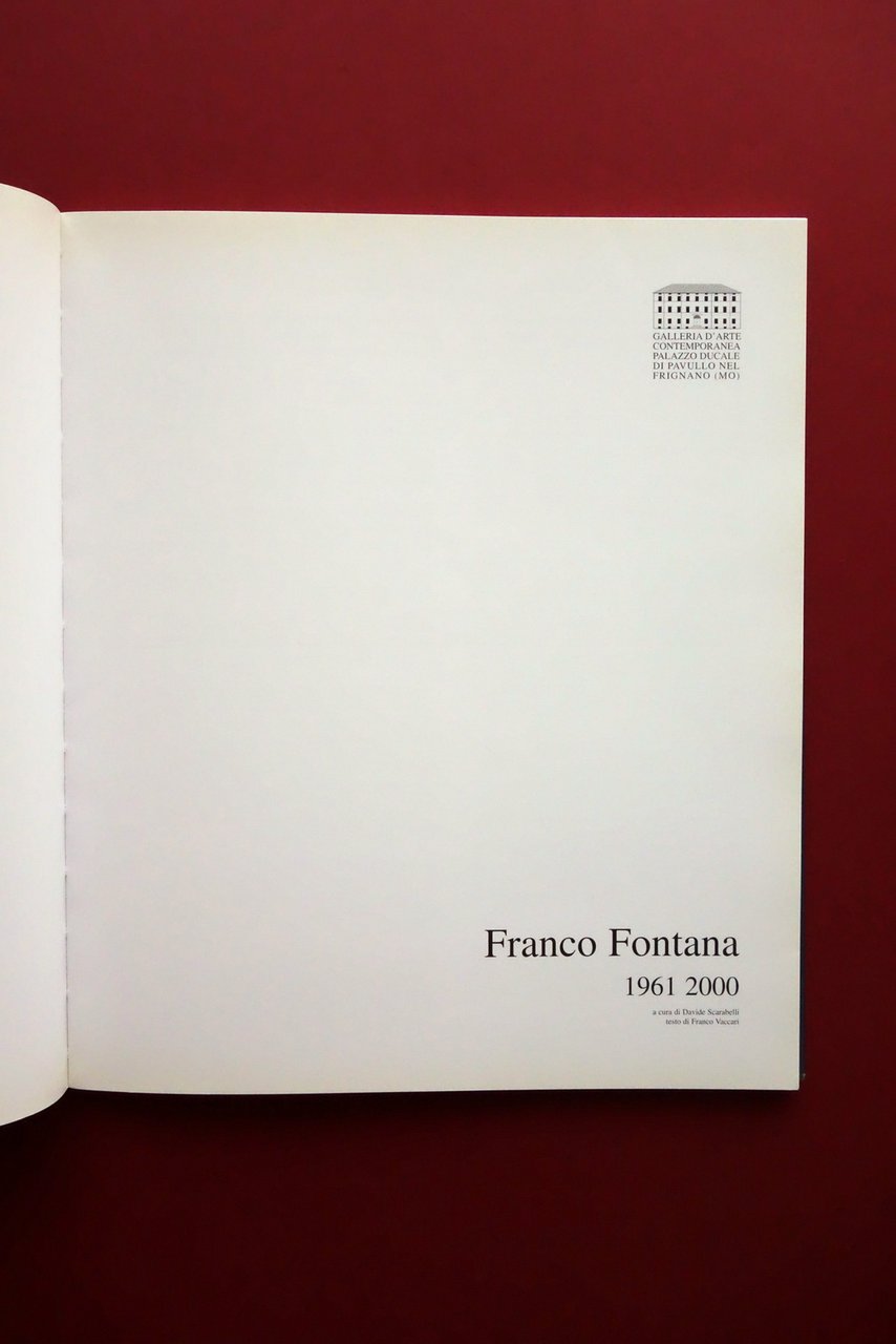 Catalogo, Franco Fontana 1961 - 2000 a cura di Davide Scarabelli testo di Franco Vaccari Galleria d'Arte Contemporanea Palazzo Ducale di Pavullo nel Frignano (MO), 2000; cm 27x23; pp. 64 non num. con numerosissime ill. fotografiche a colori; brossura ed. Testo introduttivo di Franco Vaccari. Testi bilingue italiano / inglese. Condizioni di conservazione Molto ben conservato con minime tracce d'uso. Interni ottimi. Catalogo raro. Testo di presentazione di Franco Vaccari. SETT61.L26170 N