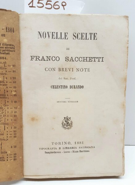 Novelle scelte di Franco Sacchetti con breve note del sacerdote professor Celestino Durando edizione settima 1881 tipografia e libreria salesiana