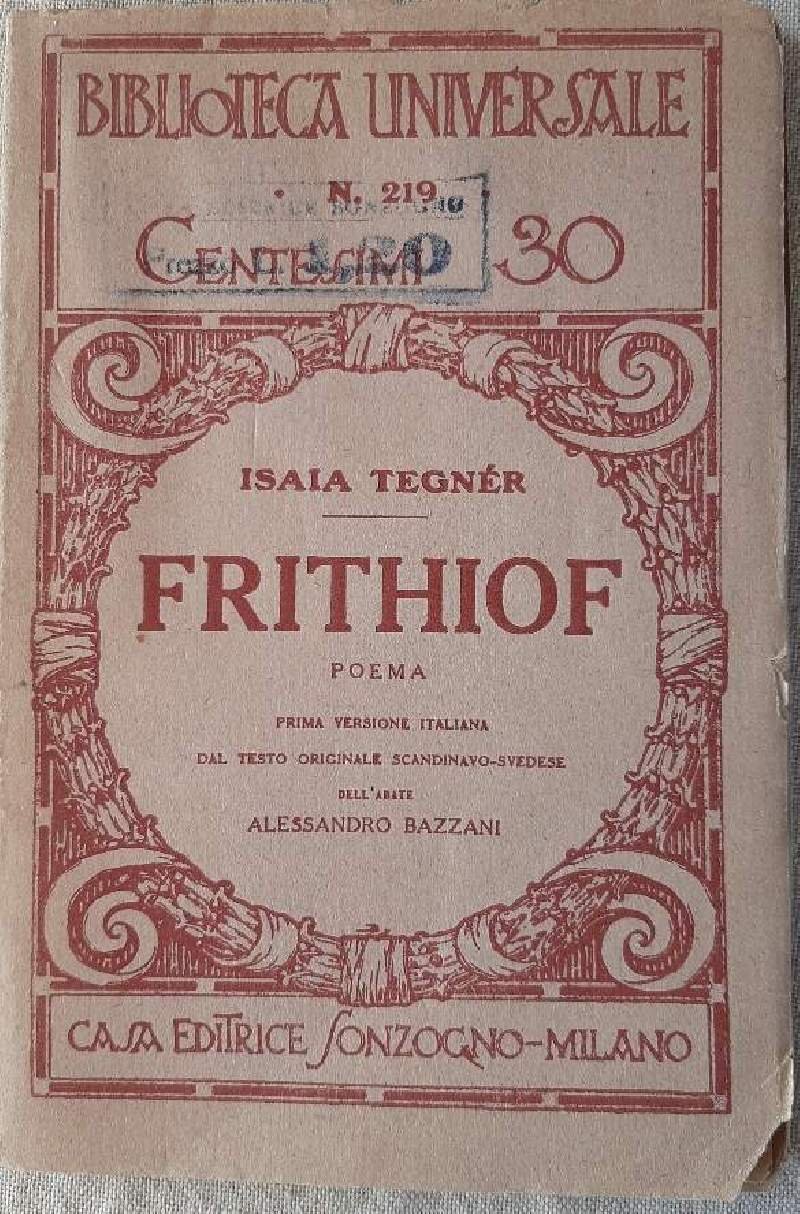 In 16', br. ed. pp. 127, prima versione italiana dal testo originale scandinavo-svedese dell'abate Alessandro Bazzani; segni d'uso e del tempo, intonso, timbro coevo al piatto.Luogo di pubblicazione MilanoEditore SonzognoAnno pubblicazione s.d.Collana Biblioteca Universale-219Materia/Argomento PoesiaScaffale 45/5Autore Tegner, Isaia ***Due to bureaucratic reasons, books dated over 70 years old cannot be immediately exported, please contact us before placing the order.***