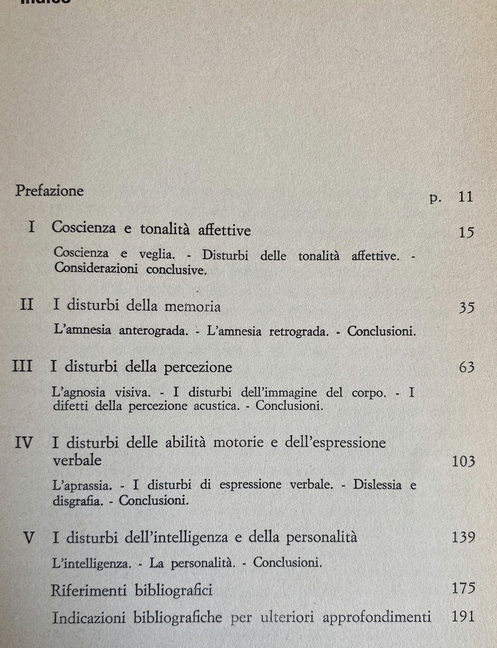 - Cervello, Funzioni mentali, Studi scientifici, Manuali, Danni cerebrali, Lesioni, Malattie, Neurologia, Neuropsicologia, Medicina, Psicologia, Coscienza, Affettività, Disturbi, Memoria, Amnesia, Abilità motorie, Aprassia, Linguaggio, Dislessia, Disgrafia, Intelligenza, Scienze cognitive, Clinica, Comportamento, Comunicazione, Saggi, Libri fuori catalogo, Demenza