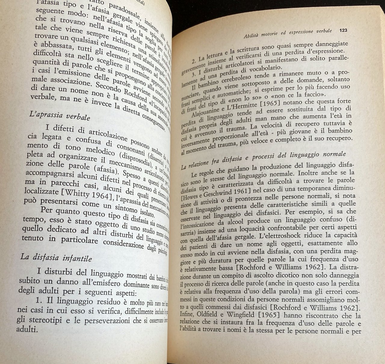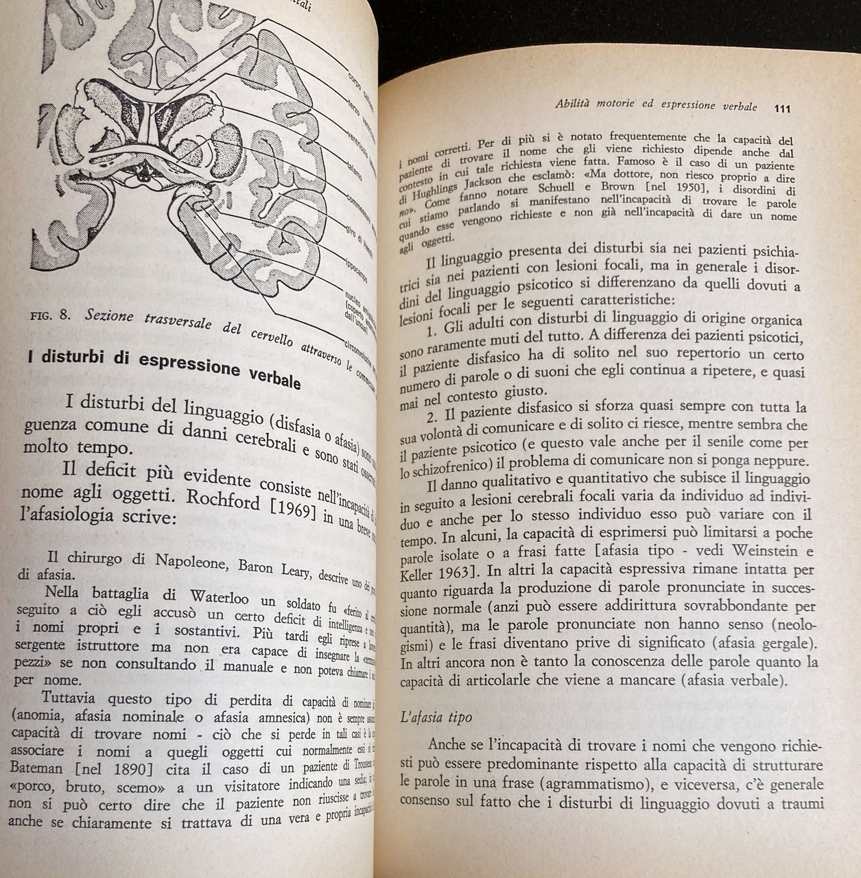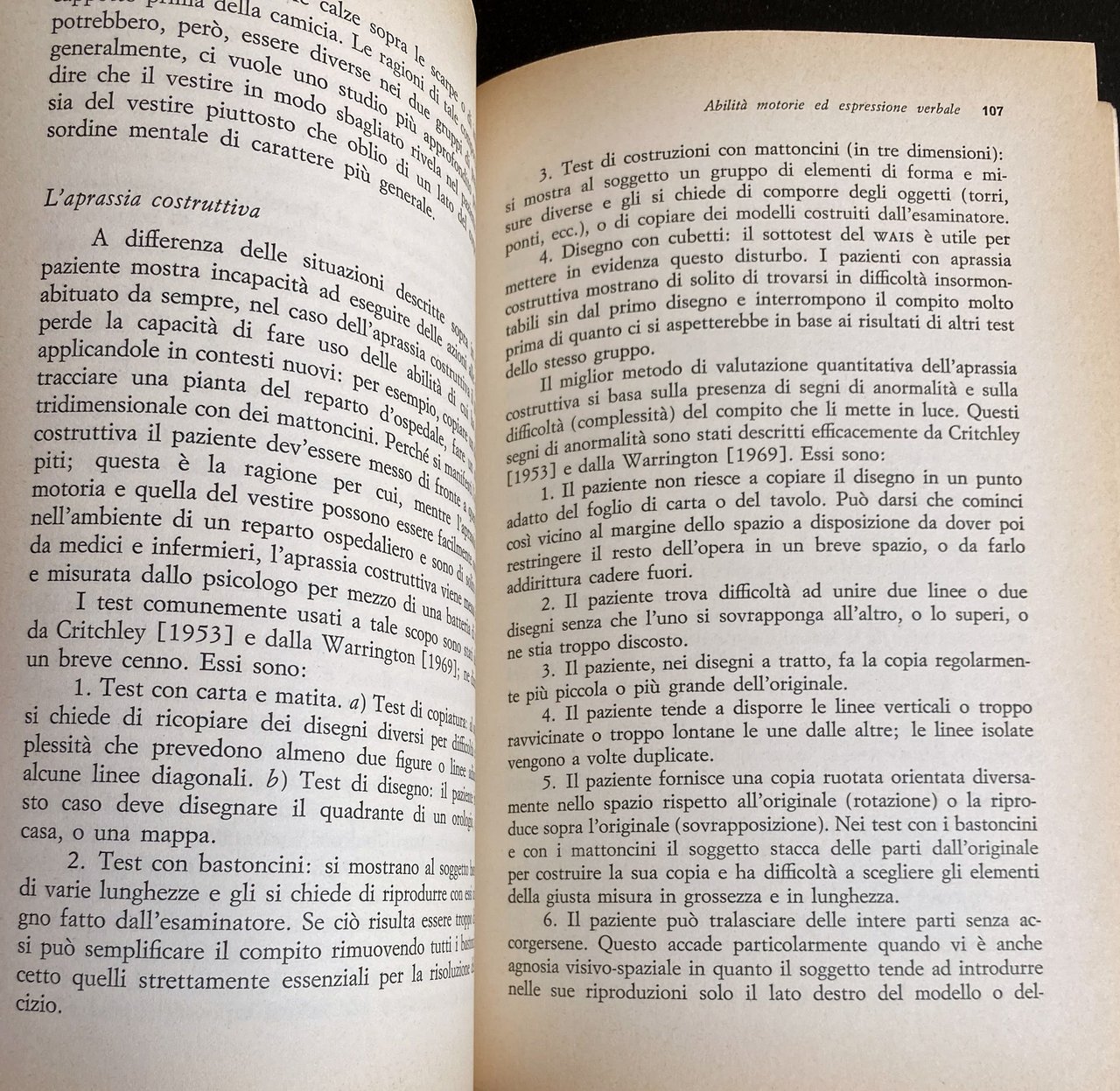 Soggetti: Cervello Funzioni mentali Studi scientifici Manuali Disordini Danni cerebrali Lesioni Malattie neurologiche cognitive Patologie Neurologia Medicina Psicologia Coscienza Affettività Relazioni Tonalità affettive Coscienza Veglia Disturbi Memoria Amnesia anterograda retrograda Percezione Agnosia visiva Immagine Corpo Difetti Acustica Abilità motorie Espressione verbale Aprassia Linguaggio Dislessia Disgrafia Intelligenza Personalità Riferimenti Bibliografia Osservazione Ricerche Clinica Uomini Esseri umani Esperimenti Animali Attività motoria Disabilità Letteratura scientifica Fonti Olistica Anatomia Fisiologia Funzionamento Trauma cranico Paul Broca K.S. Lashley Fisica Mente Meccanismi Geschwind Collegamenti Aree corticali Penfield Roberts Stimolazione elettrica Comportamento A. R. Luria Lurija Funzioni superiori Pensiero Funzioni psichiche alterate Sistemi funzionali complessi Modificazioni Alterazione Atti Sequenze Perdita Competenze Comunicazione Compensazione Adattamento Dipendenza Operazioni localizzabili Traumi cranici Sperimentale Umore Inconscio Invecchiamento Paralisi Anosognosia Afasia Eccitazione Emisferi Comprensione Corteccia Segnali corticali Difetti Paziente Demente Demenza Difficoltà Disfasia Pazienti disfasici Elettrodi Errori Lobi frontali funzioni Sindrome di Gerstmann Geschwind Gloning Compromissione Incapacità Intellettuale Apprendimento Emisfero sinistro Leucotomia Perdita Linguistica Corpi mammillari Motore Neuropsicologia Normale Oggetti Lobo parietale Prestazione Fantasma Prefrontale Psichiatria Psicologico Lettura Scrittura Riconoscimento Riconoscere Risposta Destro Rochford Sensoriale Stimoli Sintomi Temporale Test Ventricolo verbale Warrington Ricerca Parole Zangwill Freud Goldstein Mayer Gross Lewin Petrie Rochford Russel Semmes Shankweiler Simmel Thorndike Warrington Whitty Weinstein Zangwill G. Benedetti J.C. Eccles Benton Konorski Mammiferi Mann-Whitney Ribot Eventi regressione Ricordi piacevoli Passato Vecchiaia Chemioterapia Depressione Impulsi nervosi Ipotalamo Fame Sete Controllo Aggressività Violenza Immaginazione Vigilanza Virus Encefalite Pierre Marie Sordità Bambini Vignolo Incidenti Kimura Disorientamento spaziale Critchley Colori Alcool Nomi Droghe Errori Prontezza Riflessi Agrammatismo Propriocezione Propriocettivi Tattili Vor Gestalt Emozioni Esercizi Recupero Ictus Età Deficit Terapia Brain Mental functions Scientific studies Manuals Disorders Brain damage Injuries Cognitive neurological diseases Pathologies Neurology Medicine Psychology Consciousness Affectivity Relationships Affective tones Consciousness Waking Disorders Memory Anterograde retrograde Perception Visual Body image Defects Acoustics Motor skills Verbal expression Apraxia Language Dyslexia Dysgraphia Intelligence Personality References Bibliography Observation Research Clinic Men Human beings Experiments Animals Motor activity Disability Scientific literature Sources Holistic Anatomy Physiology Functioning Head trauma Physics Mind Mechanisms Connections Cortical areas Electrical stimulation Behavior Higher functions Thinking Altered psychic functions Complex functional systems Modifications Alteration Acts Sequences Loss Skills Communication Compensation Adaptation Dependence Localized operations Head injuries Experimental Mood Unconscious Aging Paralysis Aphasia Excitation Hemispheres Comprehension Cortex Cortical signals Defects Patient Demented Dementia Difficulties Dysphasia Dysphasic Electrodes Errors Frontal lobes functions Syndrome Impairment Intellectual disability Learning Left hemisphere Leucotomy Loss Linguistics Mammillary bodies Motor Neuropsychology Normal Objects Lobe parietal Performance Ghost Prefrontal Psychiatry Psychological Reading Writing Recognition Recognize Response Right Sensory Stimuli Symptoms Temporal Verbal Ventricle Word Search Mammals Events Regression Pleasant Memories Past Chemotherapy Depression Nerve Impulses Hypothalamus Hunger Thirst Control Aggression Violence Imagination Alertness Encephalitis Deafness Children Accidents Spatial Disorientation Colors Alcohol Names Drugs Errors Readiness Reflexes Agrammatism Proprioception Proprioceptive Tactile Emotions Stroke Recovery Exercises Age Therapy
