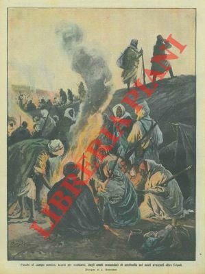 Fuochi accesi, per scaldarsi, dagli arabi comandati di sentinella nei posti avanzati oltre Tripoli.
