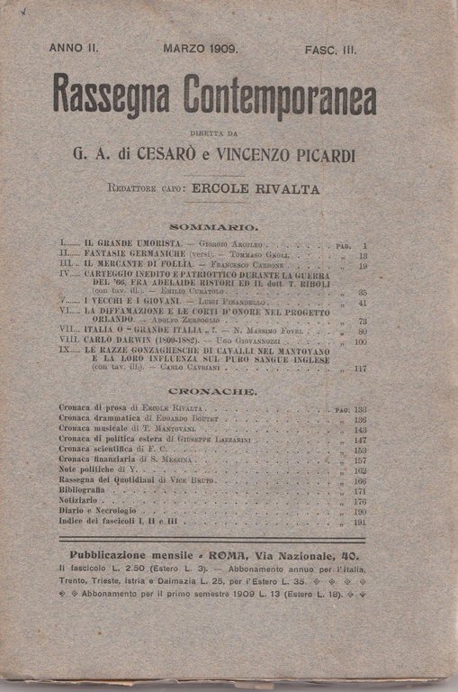 G. A. CesarÚ Rassegna Contemporanea Pubblicazione Mensile Marzo 1909 L5531