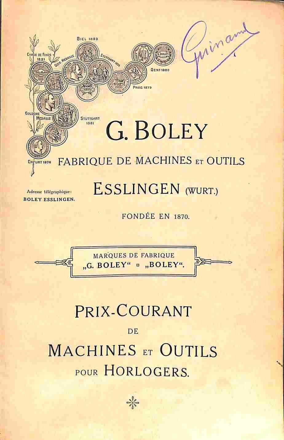 G. Boley fabrique de machines et outils, Esslingen. Prix courant de machines et outils pour horlogers