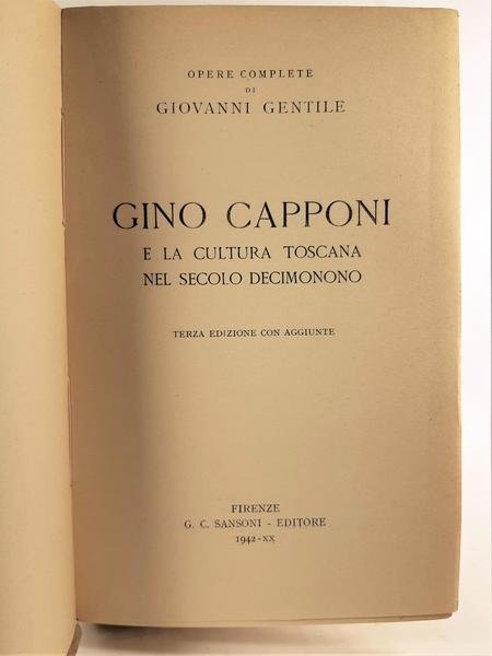 G. Gentile Gino Capponi e la cultura Toscana nel secolo decimonono 3∞ ed. Sanzoni 1942